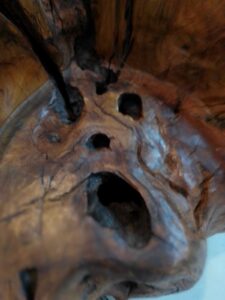 Στο κάθισμα αποτυπώνεται ένα τρομακτικό πρόσωπο με χαώδη μάτια, μύτη